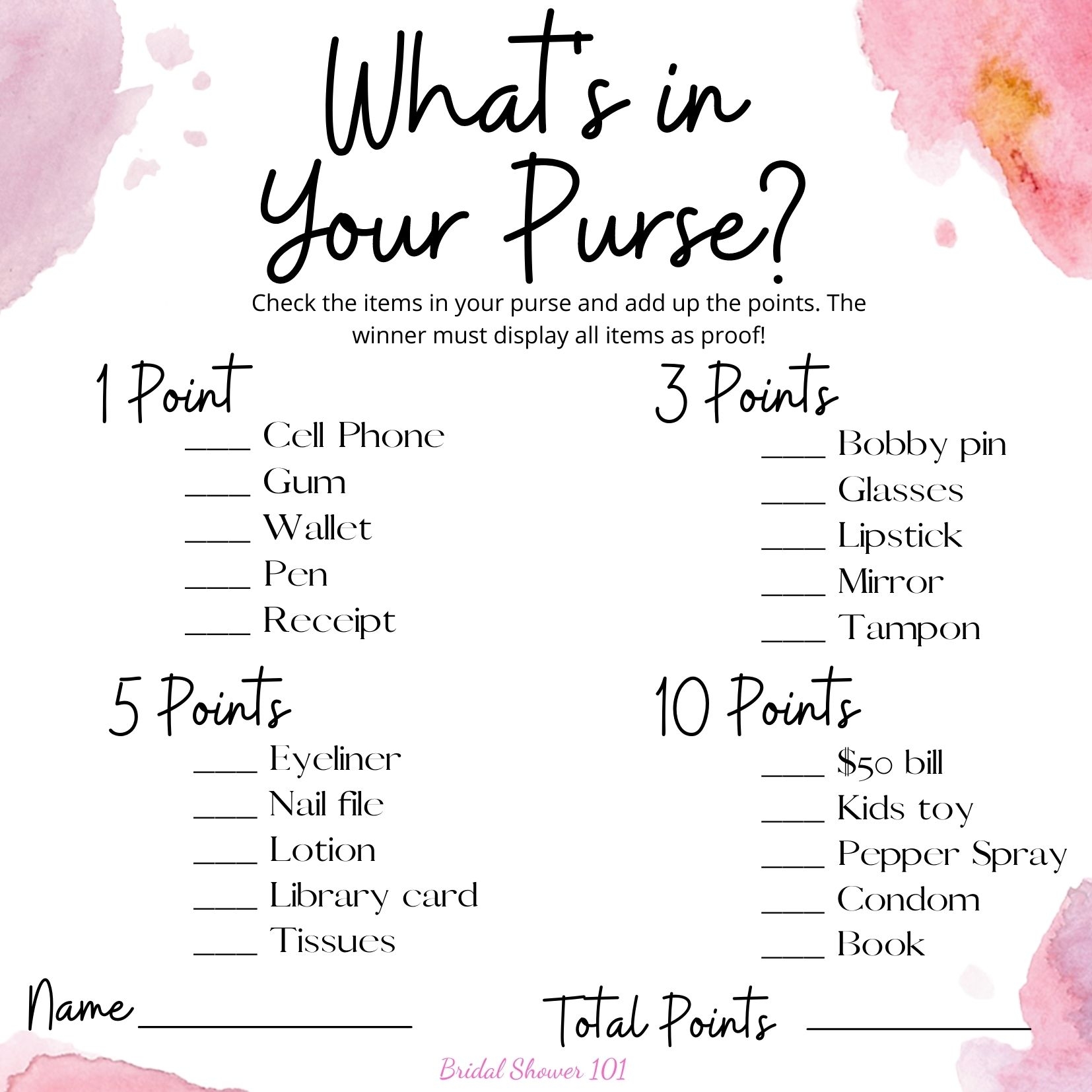 In conclusion, free printable bridal shower games like “What’s in Your Purse” are a fantastic way to add some fun and excitement to your bridal shower without breaking the bank. They are easy to download, print, and customize, making them a convenient and cost-effective option for brides on a budget. So why not give this game a try at your next bridal shower and see how much fun you and your guests can have?
