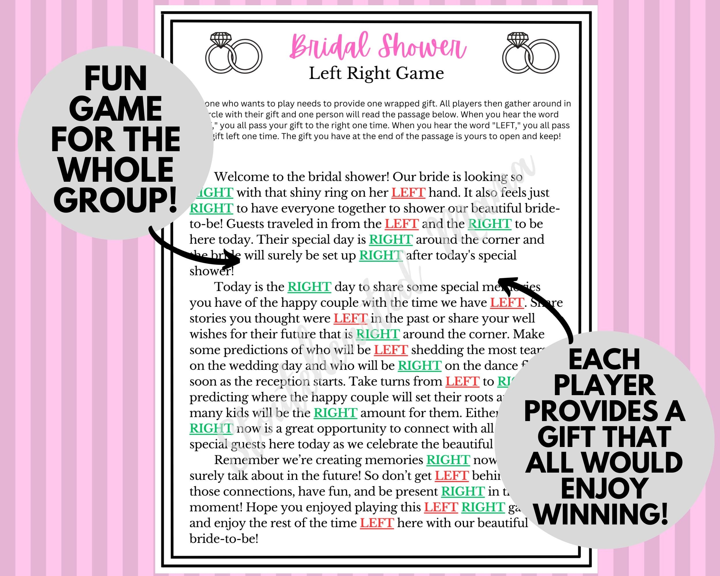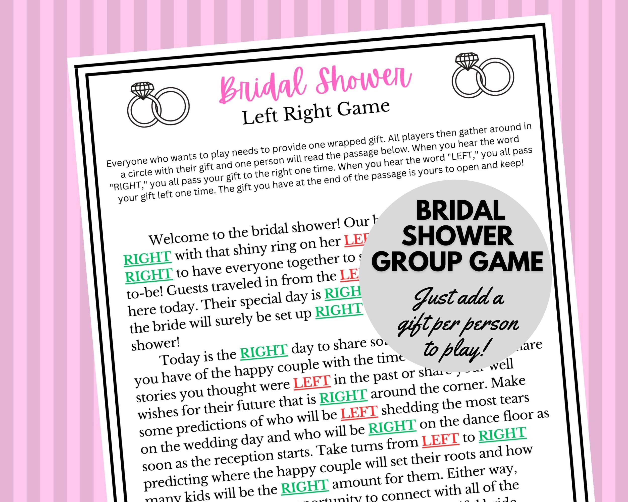 Overall, the Left Right game is a simple yet entertaining addition to any bridal shower. It’s a great way to get guests involved and create lasting memories for the bride-to-be. With free printable options available online, hosting this game at your next bridal shower is easier than ever. So gather your guests, print out the game cards, and get ready for a fun and interactive party that everyone will enjoy!