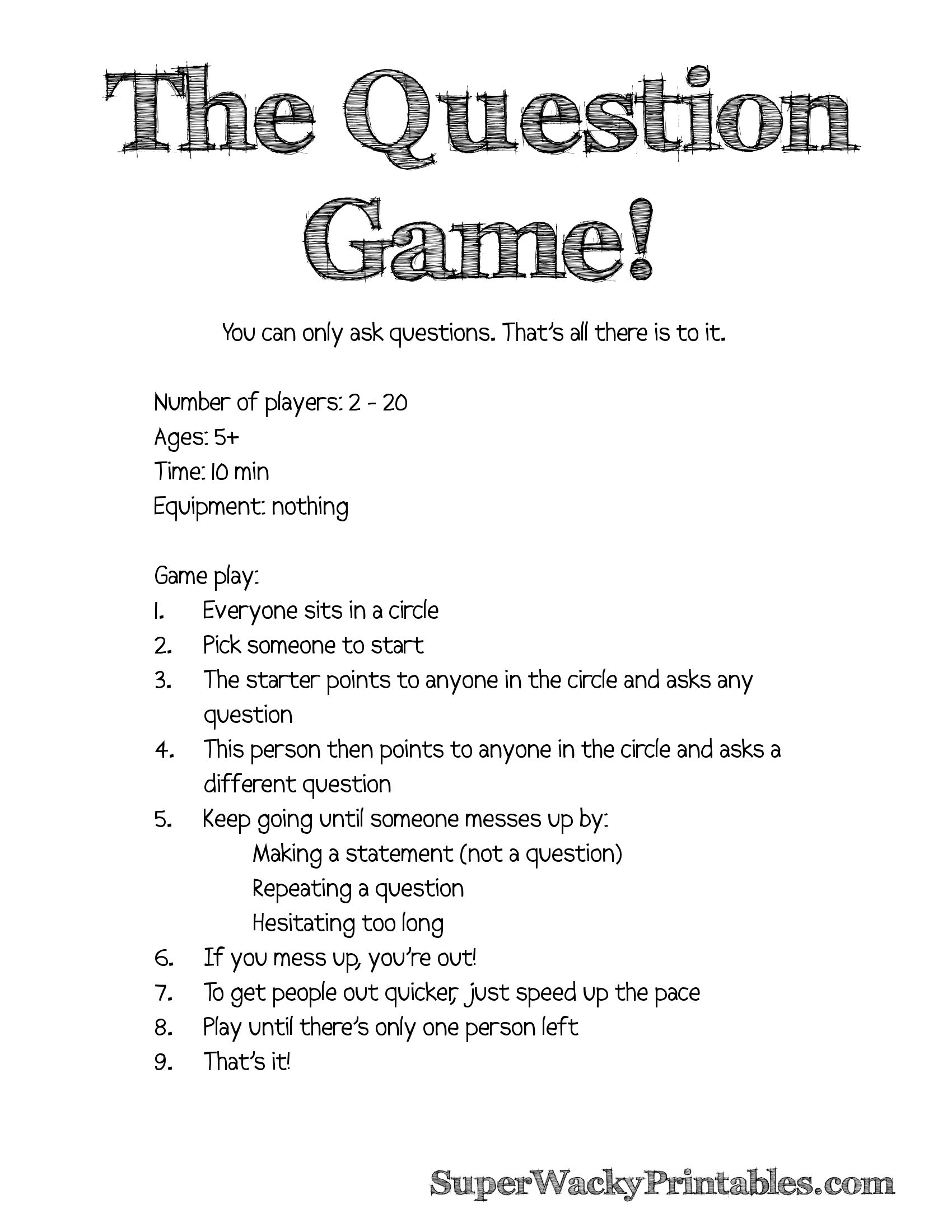 Free Printable Car Question Games