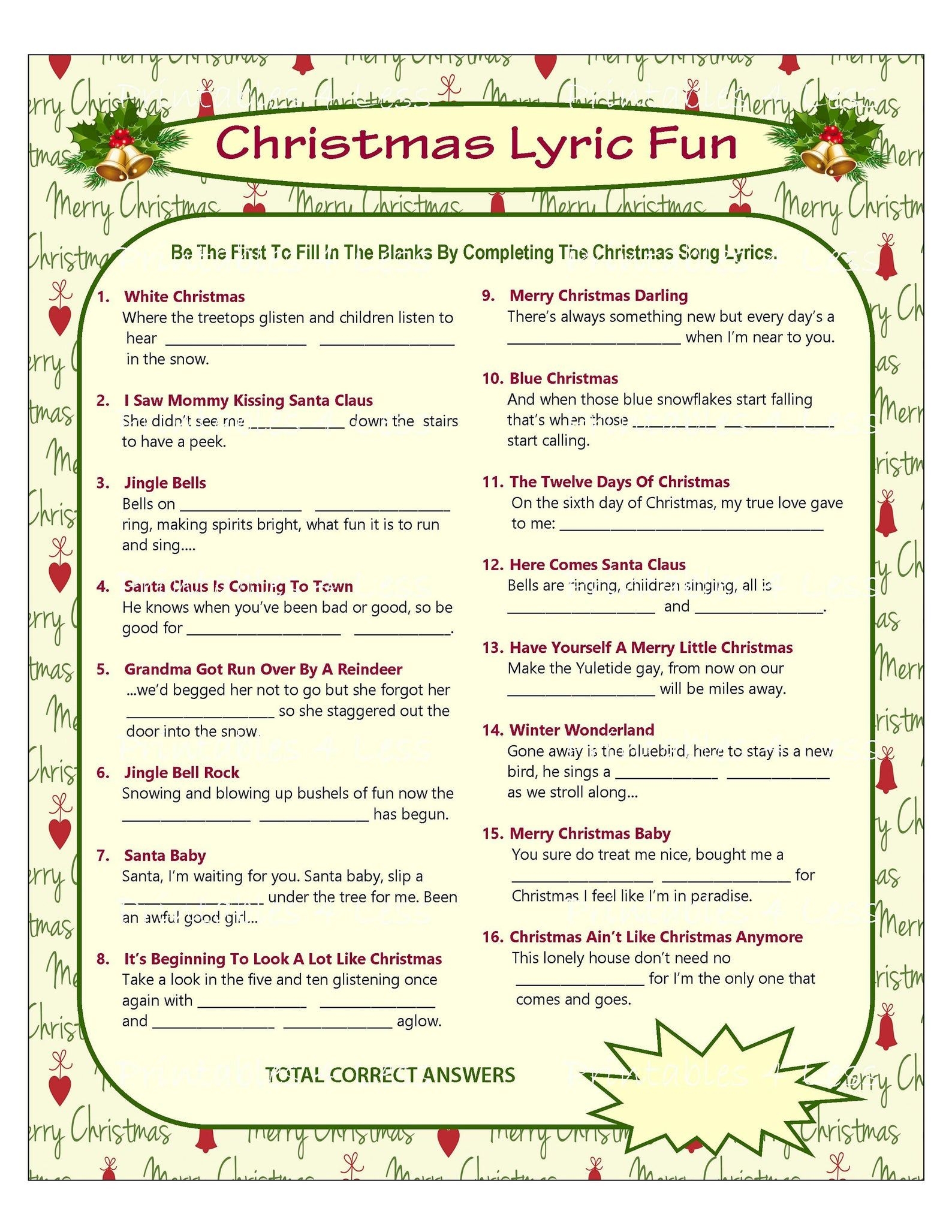 Christmas is a time for festive gatherings, delicious food, and of course, singing Christmas carols! If you’re looking for a fun and interactive way to get your adult friends and family members into the holiday spirit, consider playing some Christmas carol games. These games are not only entertaining, but they also help to bring people together and create lasting memories. To make things even easier, there are plenty of free printable games available online that you can download and print out at home.