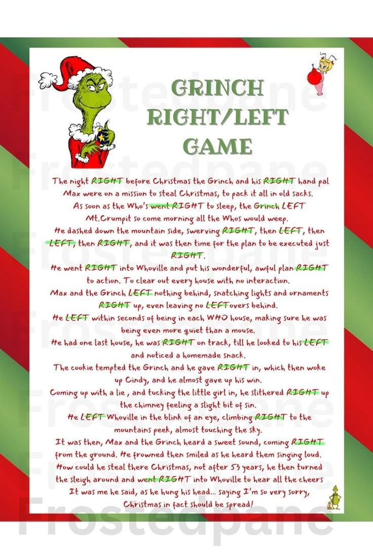 The Christmas Left Right Story Game is a popular activity that involves passing a story around a circle of players, with each person reading a portion of the story and passing it along to the next person. The catch is that certain words in the story prompt players to pass the story either to the left or right, adding an element of surprise and excitement to the game. This game is perfect for breaking the ice and getting everyone in the holiday spirit!