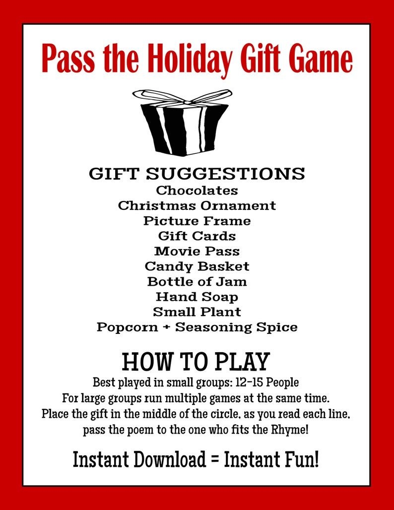 Christmas is a time for giving, and what better way to spread the holiday cheer than with a fun game of pass the gift? This classic party game is a favorite among both kids and adults, and it’s a great way to keep everyone entertained during holiday gatherings. If you’re looking for a free printable version of the game, you’re in luck!