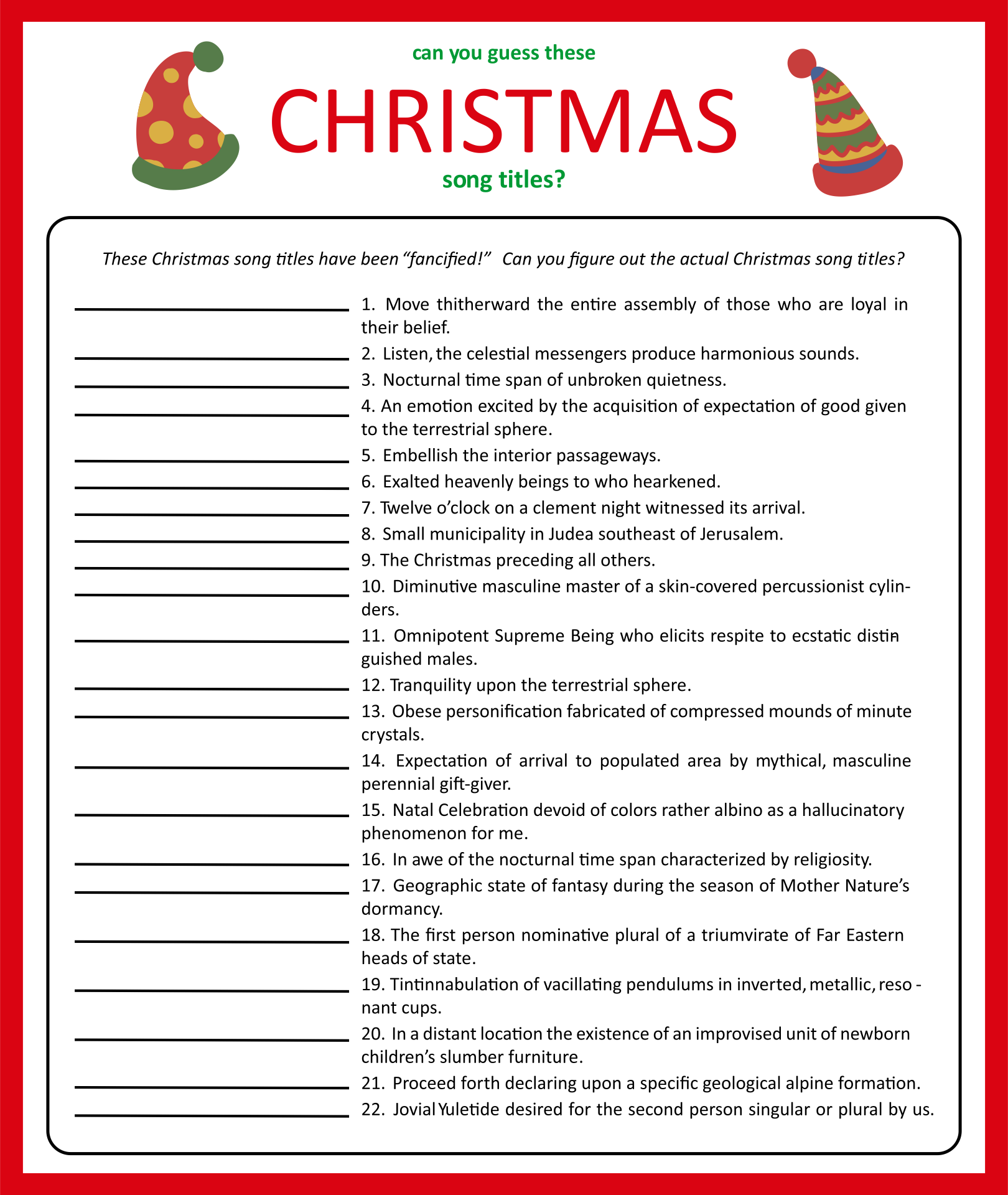 Christmas songs are a beloved part of the holiday season, and what better way to celebrate than with some fun and games? These printable games are easy to set up and will have everyone singing along in no time. So gather your friends and family, crank up the holiday tunes, and get ready to have a holly jolly good time!
