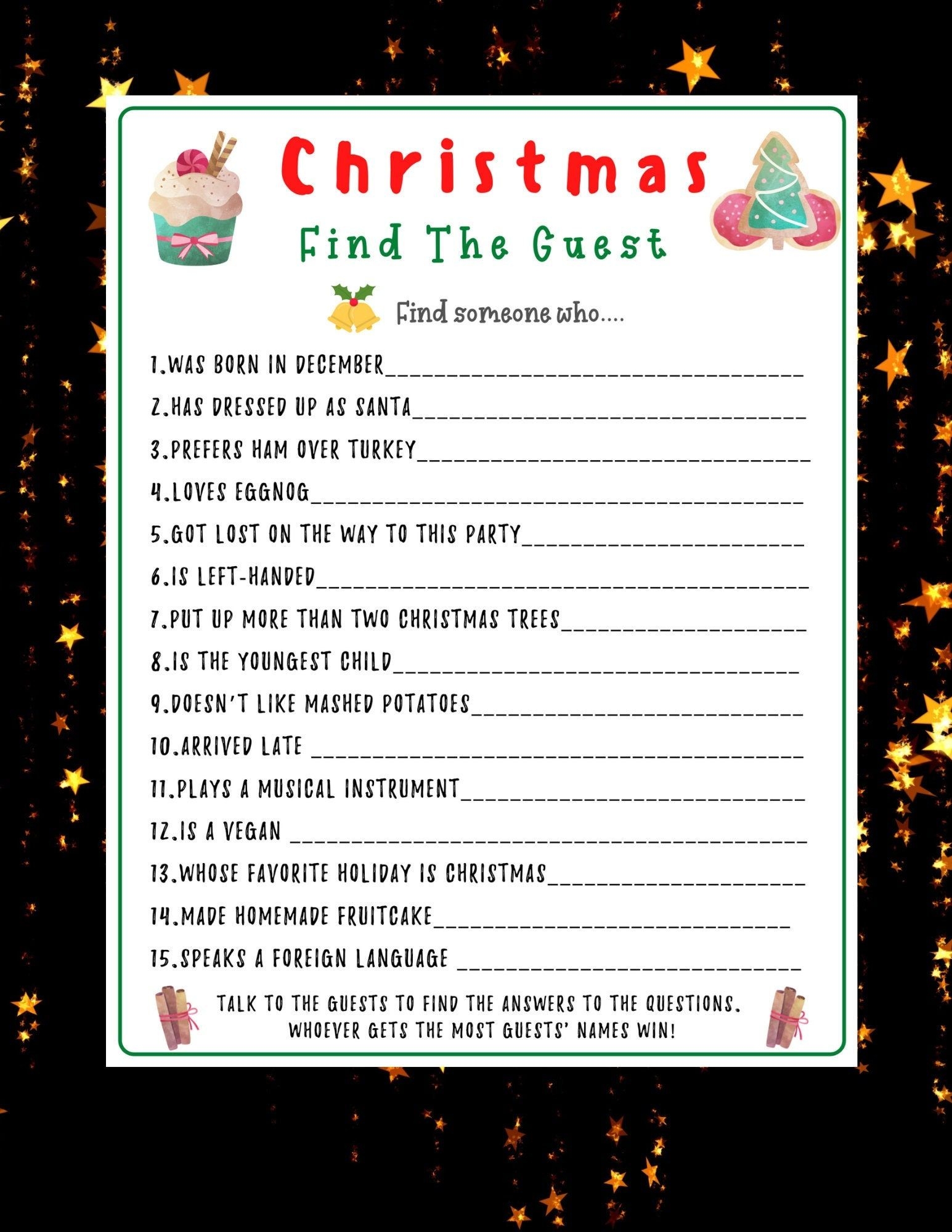 1. Christmas Trivia: Test your guests’ knowledge of Christmas traditions, history, and music with a fun trivia game. Create a list of questions and answers, then hand out printed sheets for guests to fill in their responses. The person with the most correct answers wins a prize!