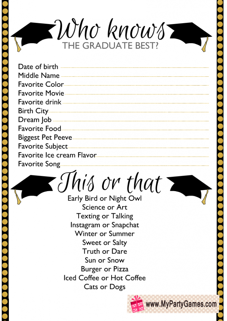 Whether you’re hosting a small gathering with close friends and family or a larger party with classmates and professors, these printable games are sure to be a hit. From trivia quizzes to scavenger hunts, there are plenty of options to choose from that will appeal to guests of all ages and interests. Plus, since they’re free to download and print, you won’t have to spend a fortune to add some fun to your party.
