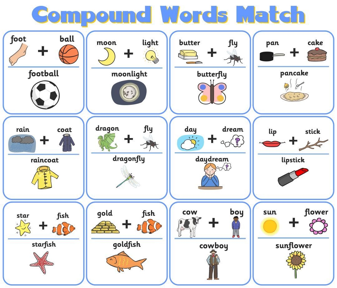 4. Compound Word Memory Game: Print out cards with different compound words on them and have the child play a memory matching game. This helps improve memory retention and recognition of compound words.