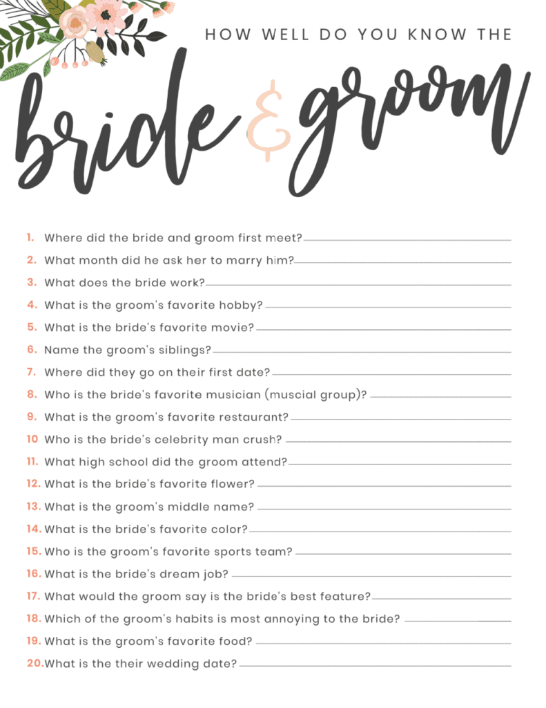 Couples bridal showers are becoming increasingly popular as couples are choosing to celebrate their upcoming nuptials together with friends and family. Games are a great way to break the ice and get everyone interacting and having a good time. These free printable games are easy to set up and are sure to be a hit with your guests.