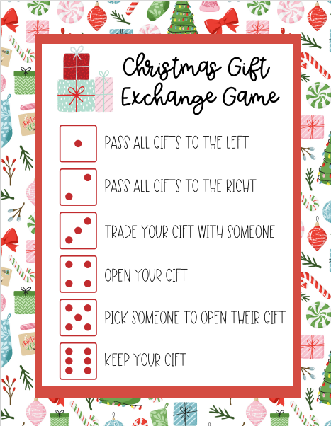 Christmas gift exchanges are a fun and festive tradition that many families and friends enjoy during the holiday season. If you’re looking for a new and exciting way to spice up your gift exchange this year, why not try a free printable dice game? This game is not only easy to play, but it also adds an element of surprise and excitement to the gift-giving process.