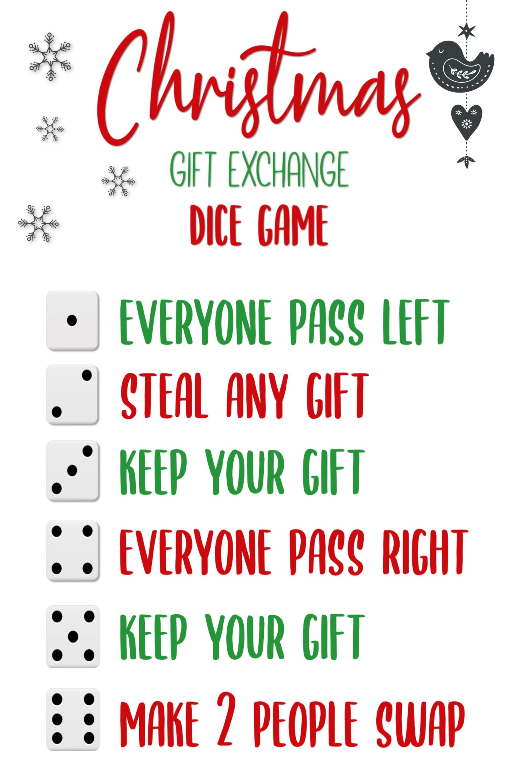 Free Printable Dice Gift Exchange Game PDF
