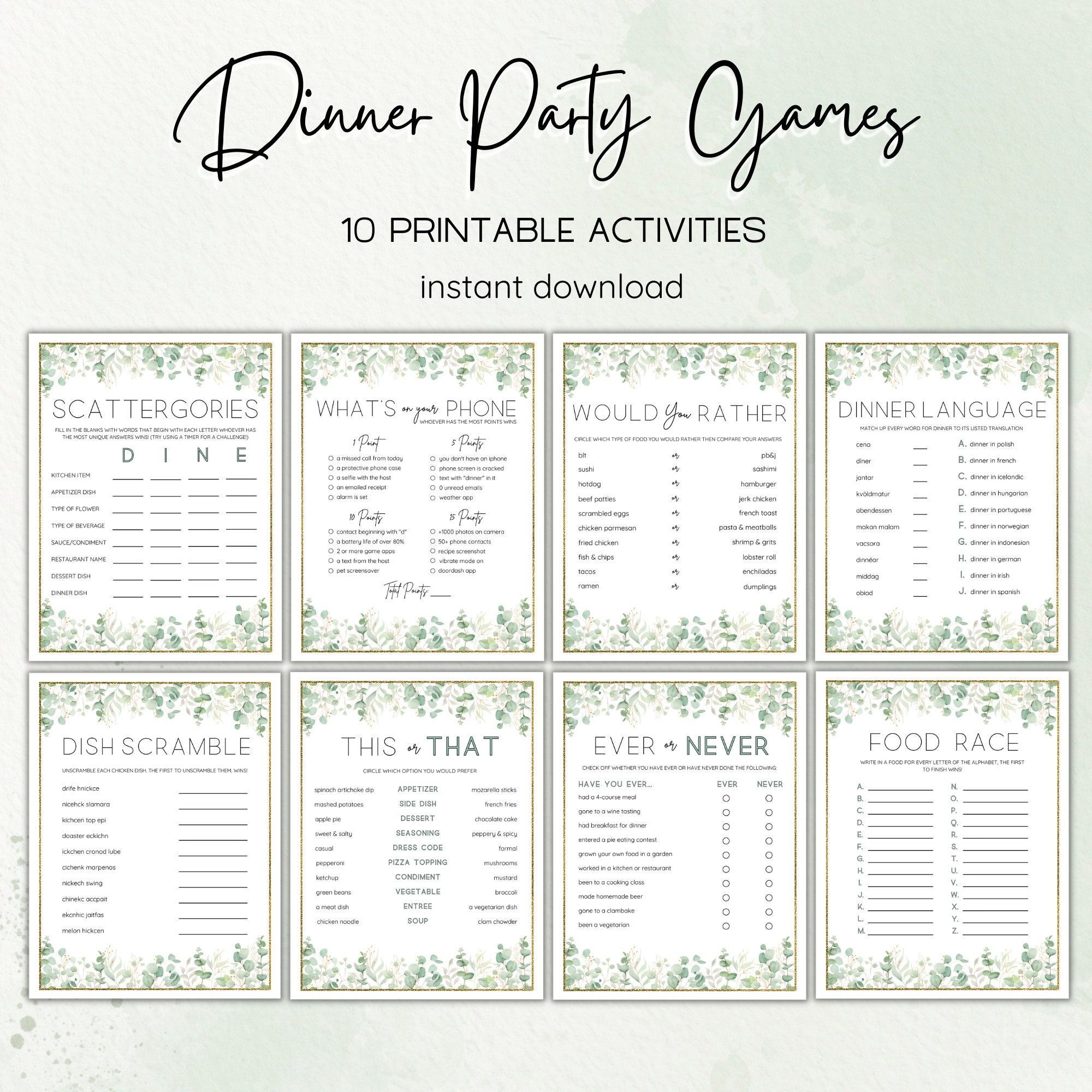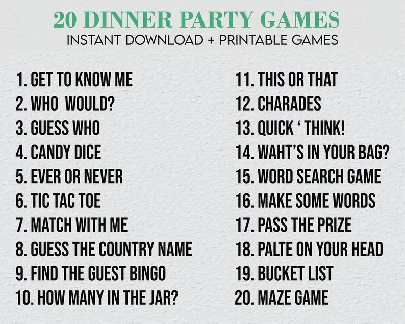 Free printable dinner games are a fantastic way to entertain your guests and make your dinner party memorable. Whether you prefer trivia, word games, ice breakers, charades, or bingo, there’s a game for everyone to enjoy. So, print out your game sheets, gather your guests, and get ready for a night of laughter and fun!
