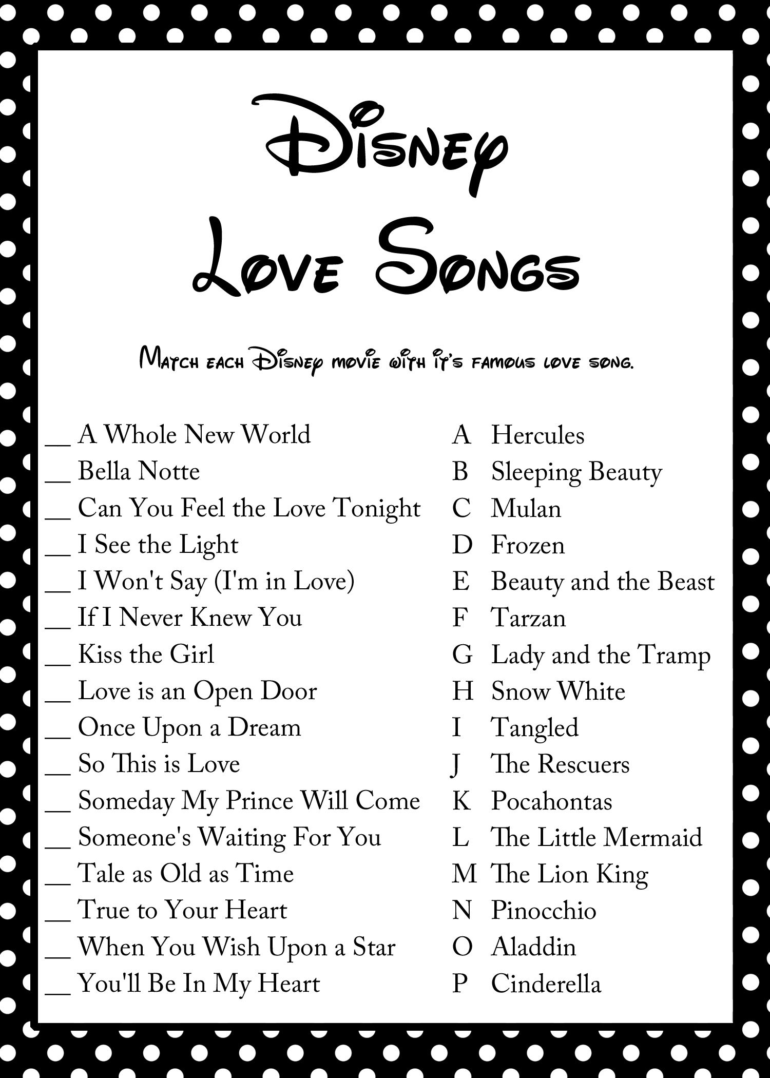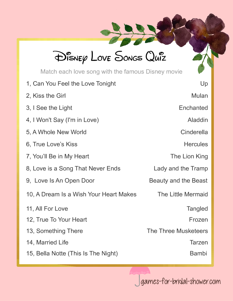 Simply download and print out the game cards, which feature famous love quotes from Disney movies. Your guests can then try to guess which movie each quote is from. The person with the most correct answers wins a prize!