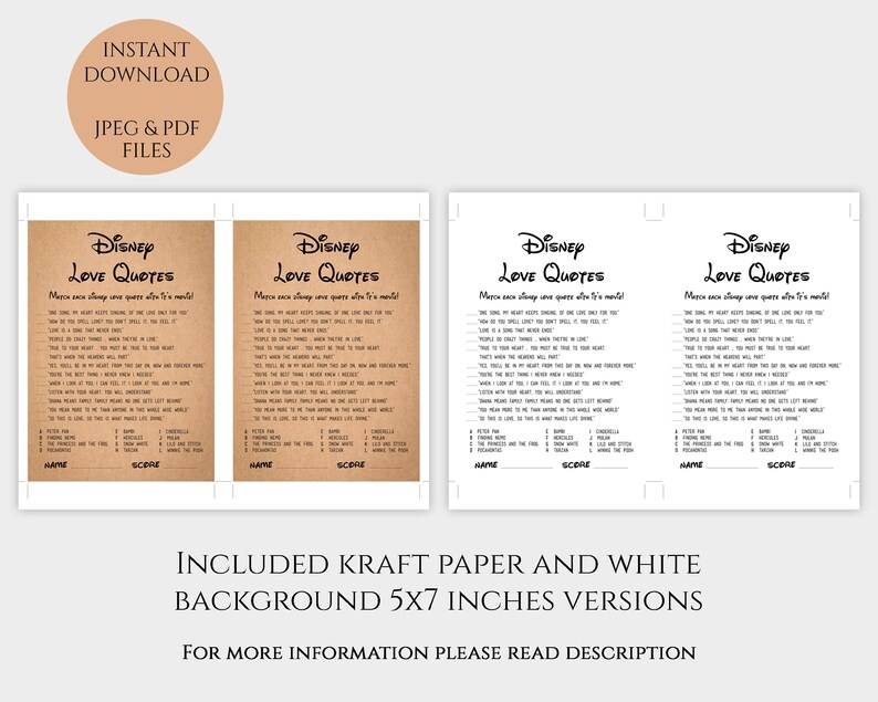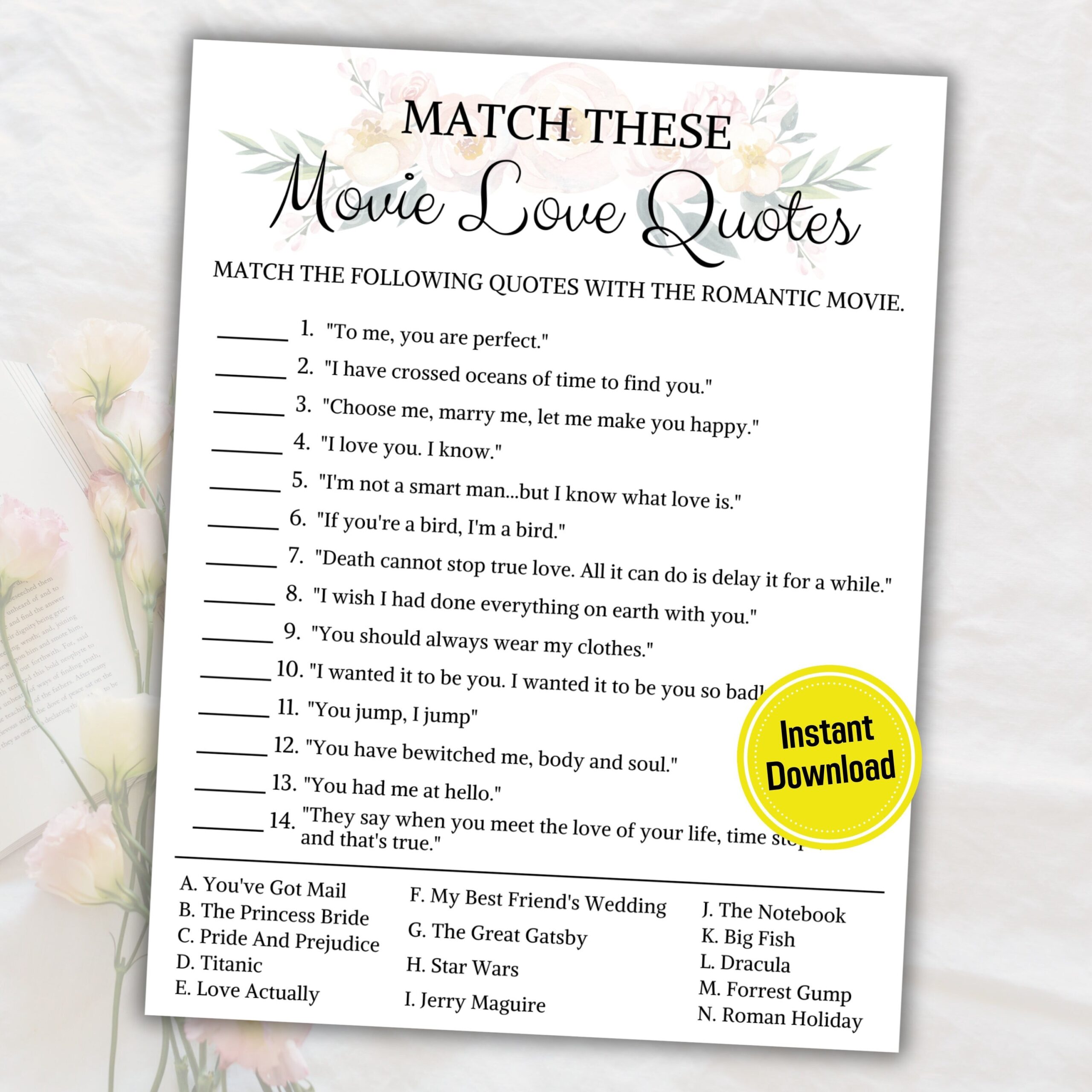 Disney movies are known for their heartwarming and inspiring quotes about love. If you’re a Disney fan and looking for a fun and romantic game to play, then you’re in the right place! Our printable Disney love quotes matching game is perfect for a date night, a Disney-themed party, or just a cozy evening in with your loved one.