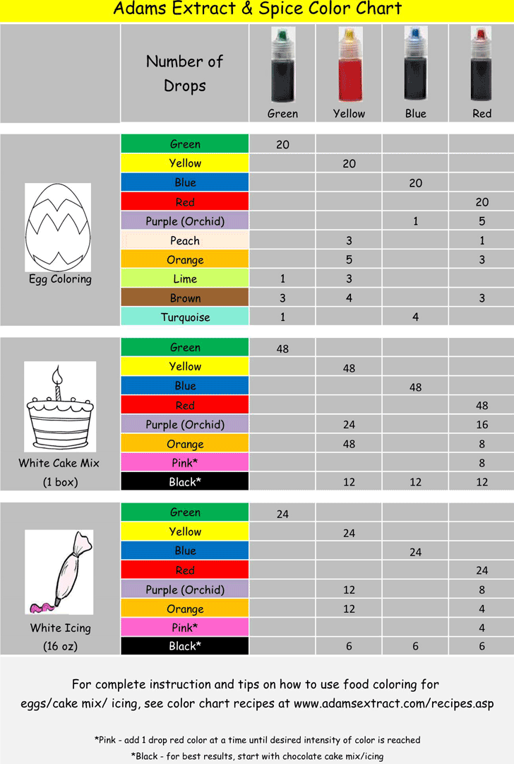 Printable Food Color Mixing Chart Mixing Food Coloring