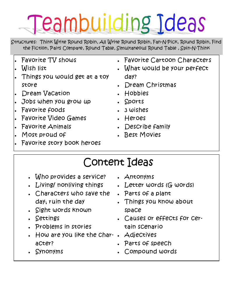 Free Printable Team Building Activities for Work