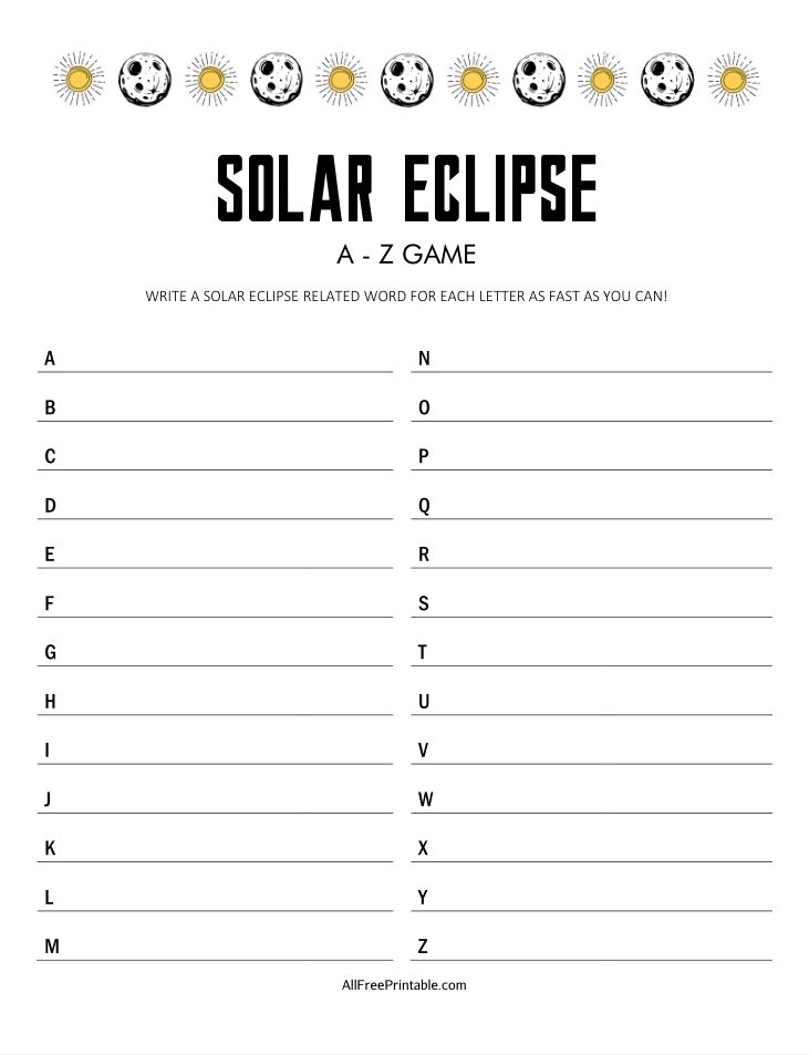 4. Solar Eclipse Word Search: Keep your kids entertained with a word search puzzle that features words associated with solar eclipses. They can search for terms like “umbra,” “penumbra,” and “totality” while sharpening their focus and attention to detail.