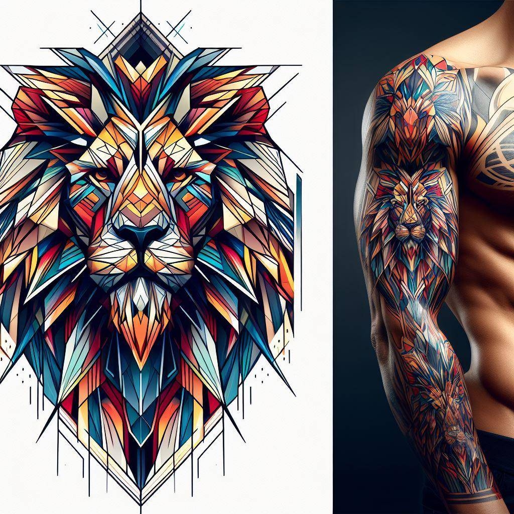 In conclusion, geometric lion tattoos with color are a stunning and eye-catching choice for anyone looking to make a bold statement with their body art. The use of color can elevate the design and bring it to life in a way that black ink alone simply cannot. So, if you’re considering getting a geometric lion tattoo, don’t be afraid to play with color and create a truly unique and personalized piece of art.