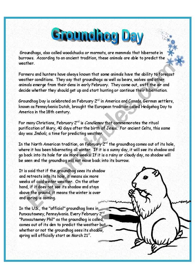 Groundhog Day is a fun and whimsical holiday celebrated on February 2nd every year. It is believed that if a groundhog sees its shadow on this day, there will be six more weeks of winter. To celebrate this unique holiday, why not engage in some fun printable activities that are perfect for kids of all ages?