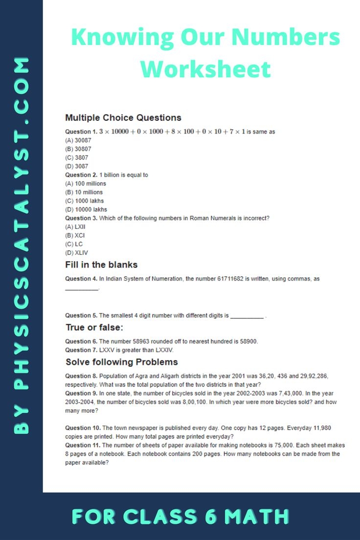 Know Your Numbers Worksheet