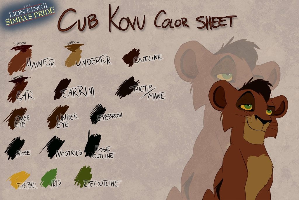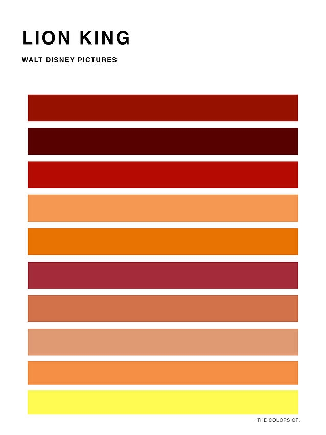 The main color palette of The Lion King consists of earthy tones such as browns, greens, and yellows to reflect the natural environment of the African savannah. These colors are often complemented with pops of vibrant reds, oranges, and purples to add depth and contrast to the scenes.