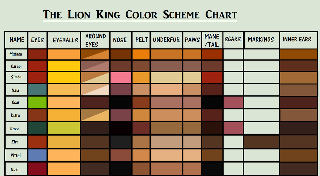 The color scheme of the Lion King extends beyond just the characters themselves. The backgrounds and landscapes are painted in rich earth tones and vivid greens to depict the diverse habitats of the African wilderness. The contrast between the warm, sunlit plains and the dark, shadowy jungles creates a sense of depth and realism in the film.