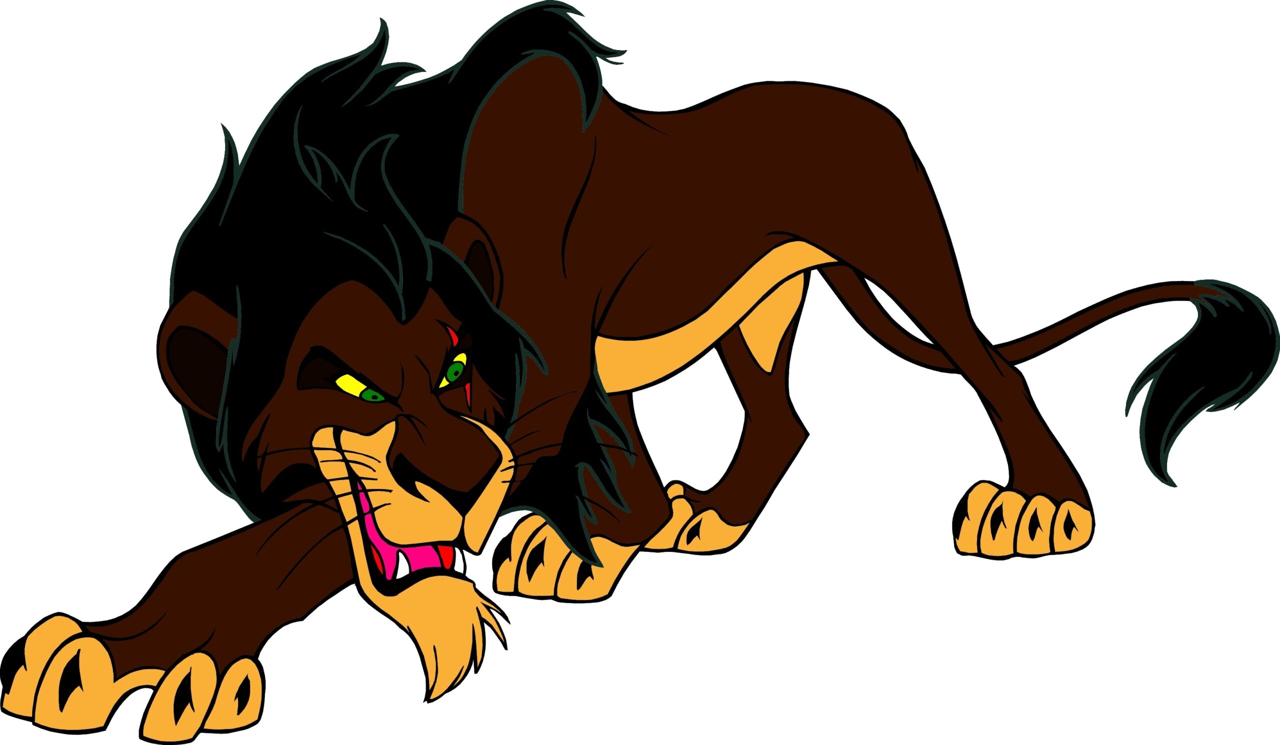 In addition to his fur color, Scar’s eyes are a piercing yellow, adding to his menacing appearance. The contrast between his dark fur and bright eyes creates a striking visual effect that immediately draws attention to his sinister gaze. This color choice further emphasizes Scar’s deceptive and manipulative nature.