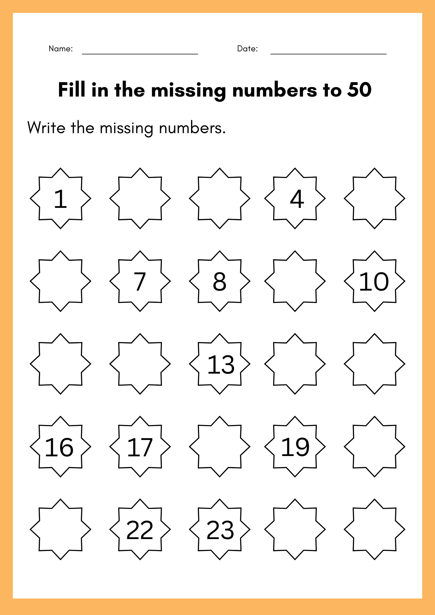 Download and Print missing numbers worksheet 1 to 50 Listed below