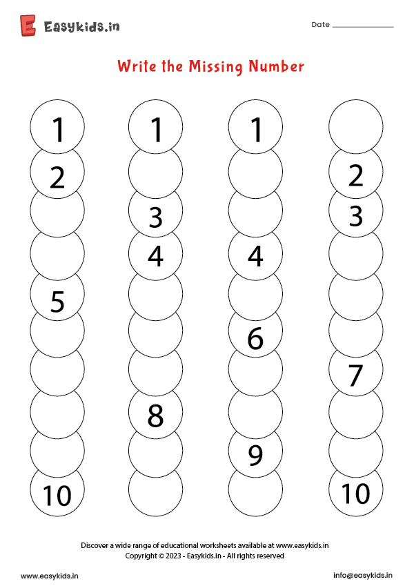 Write Missing Numbers EasyKids in Worksheets Library