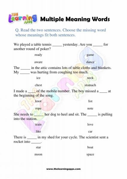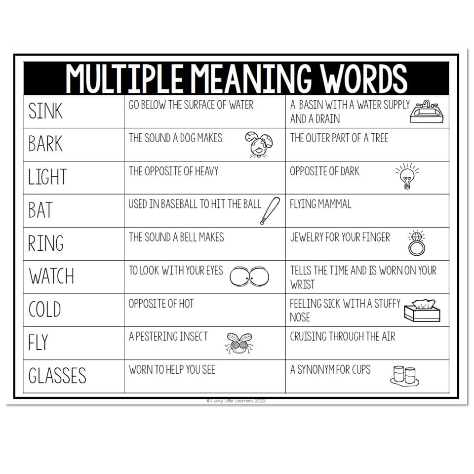 By incorporating a variety of activities, worksheets, and printables into the curriculum, educators can help students develop a strong grasp of multiple meaning words. These resources can be used in the classroom or as homework assignments to provide students with extra practice in identifying and using multiple meaning words.