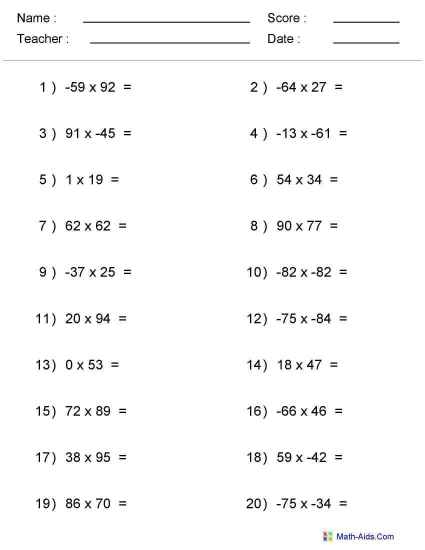 When it comes to working with negative numbers, many students can find it challenging to understand the rules for multiplying and dividing them. However, with the right practice and worksheets, this concept can become much clearer. By using worksheets specifically designed for multiplying and dividing negative numbers, students can gain a better understanding of how these operations work and build their confidence in solving related problems.