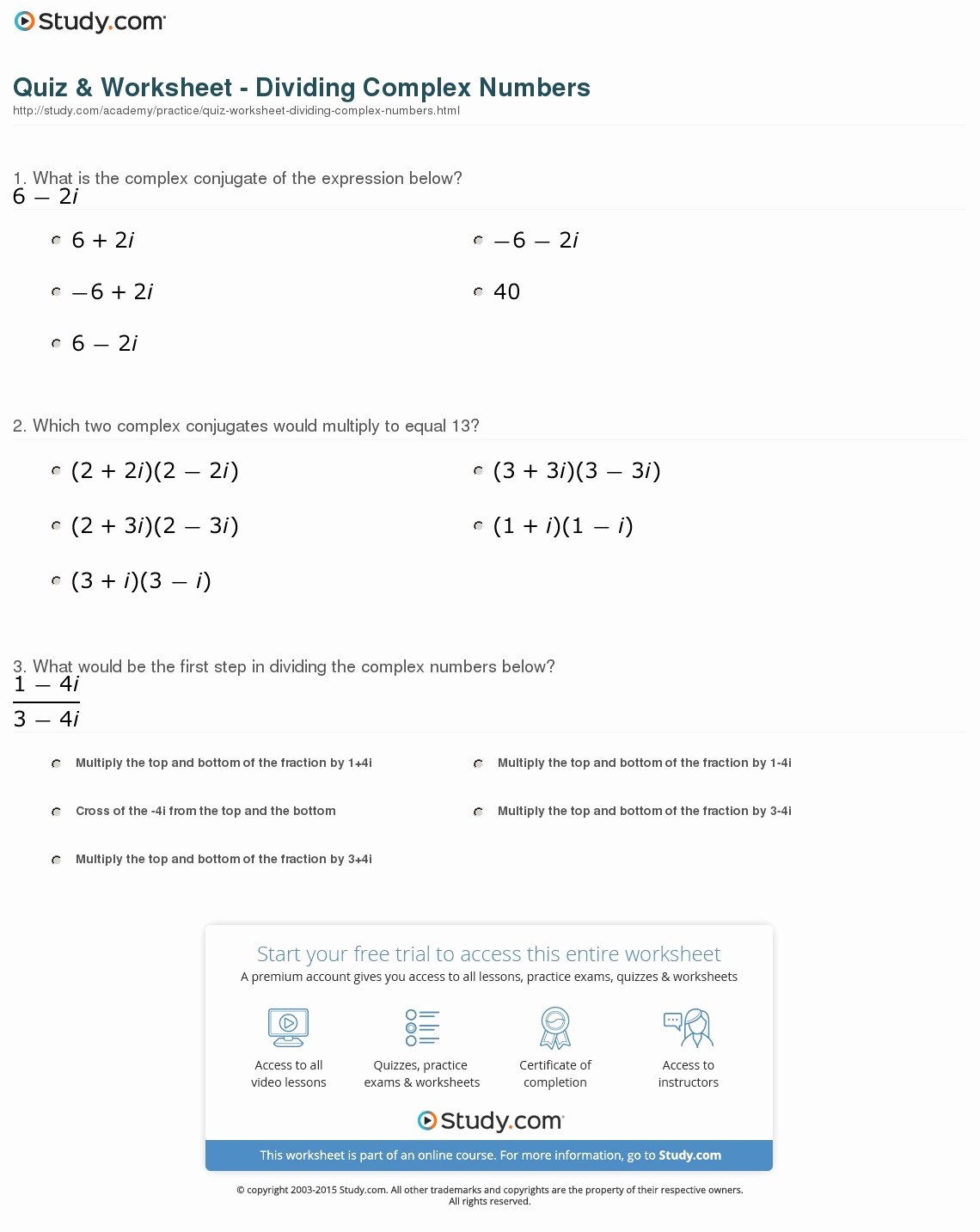 Download and Print multiplying complex numbers worksheet Listed below