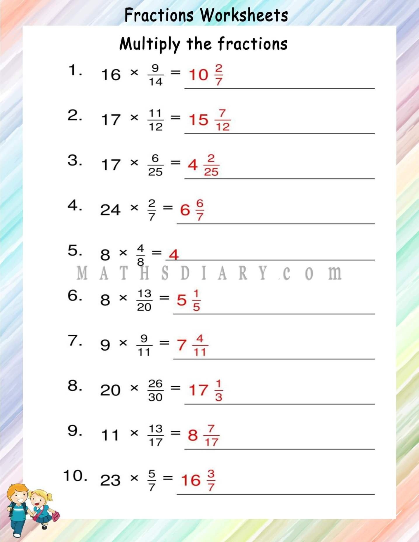 When it comes to math, multiplying fractions and whole numbers can sometimes be a bit tricky for students. However, with the right practice and worksheets, this concept can be easily mastered. By breaking down the process step by step, students can gain a better understanding of how to multiply fractions and whole numbers effectively.