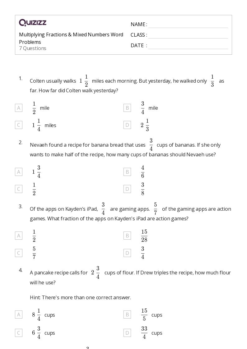 By providing students with worksheets that contain word problems, educators can engage them in critical thinking and problem-solving. These exercises encourage students to think beyond the numbers and understand the practical applications of multiplying mixed numbers.