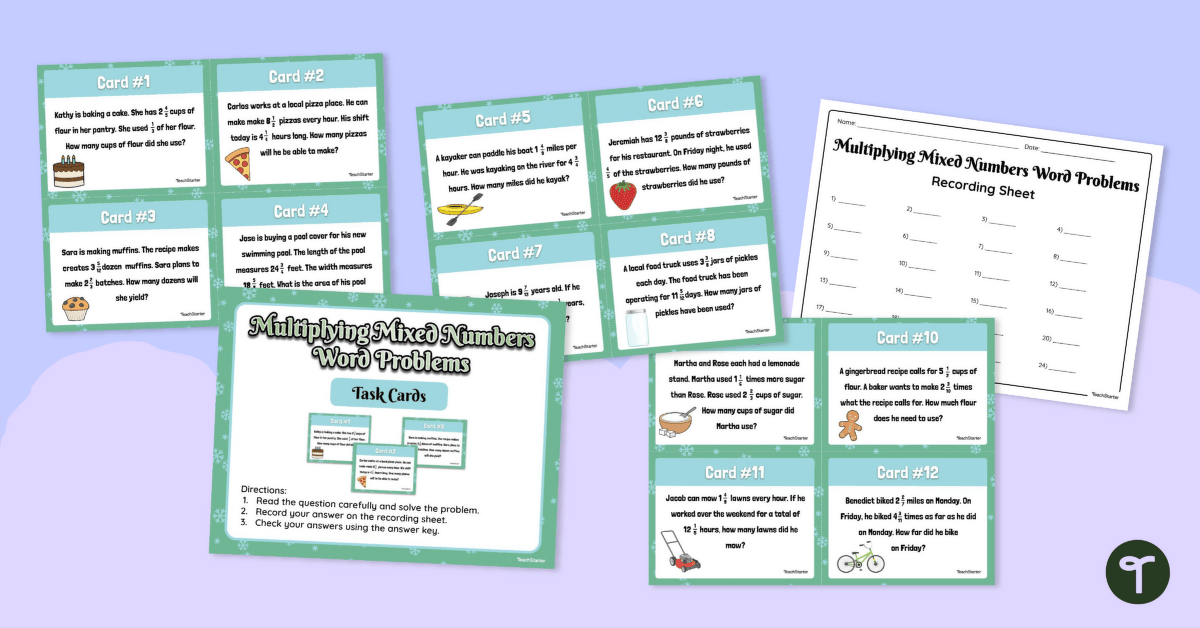 Multiplying Mixed Numbers Word Problem Task Cards Teach Starter