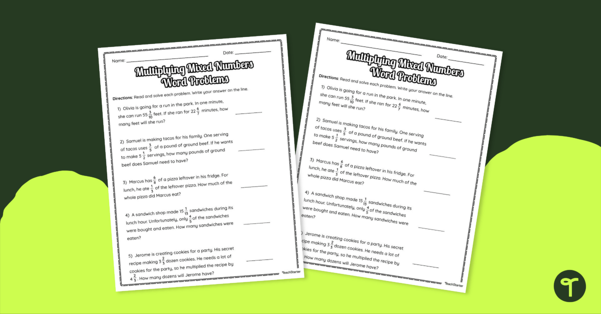 Multiplying Mixed Numbers Word Problem Worksheet Teach Starter