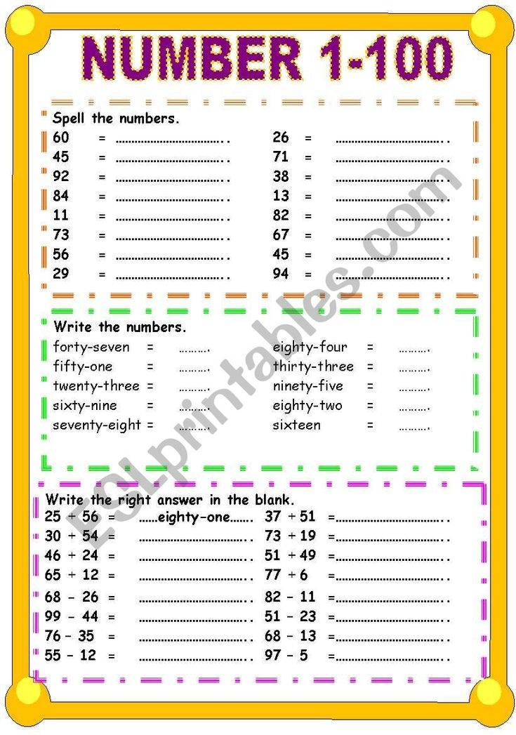 Numbers 1 To 100 Spelling