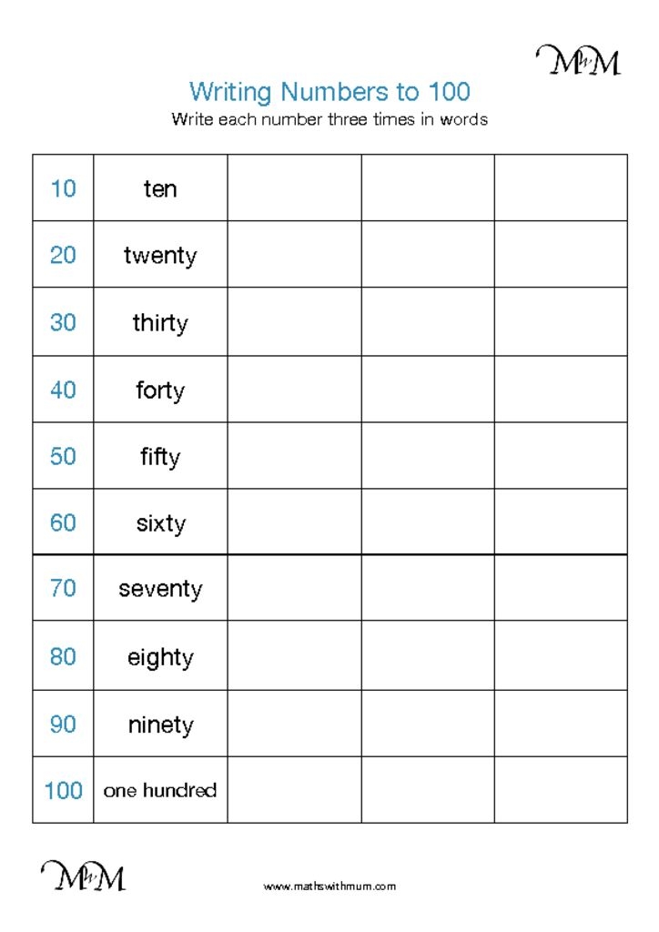 Learning to write numbers in words is an essential skill for young students to develop. It not only helps them understand the concept of numbers better but also improves their spelling and language skills. This worksheet provides a fun and interactive way for students to practice writing numbers 1-100 in words.