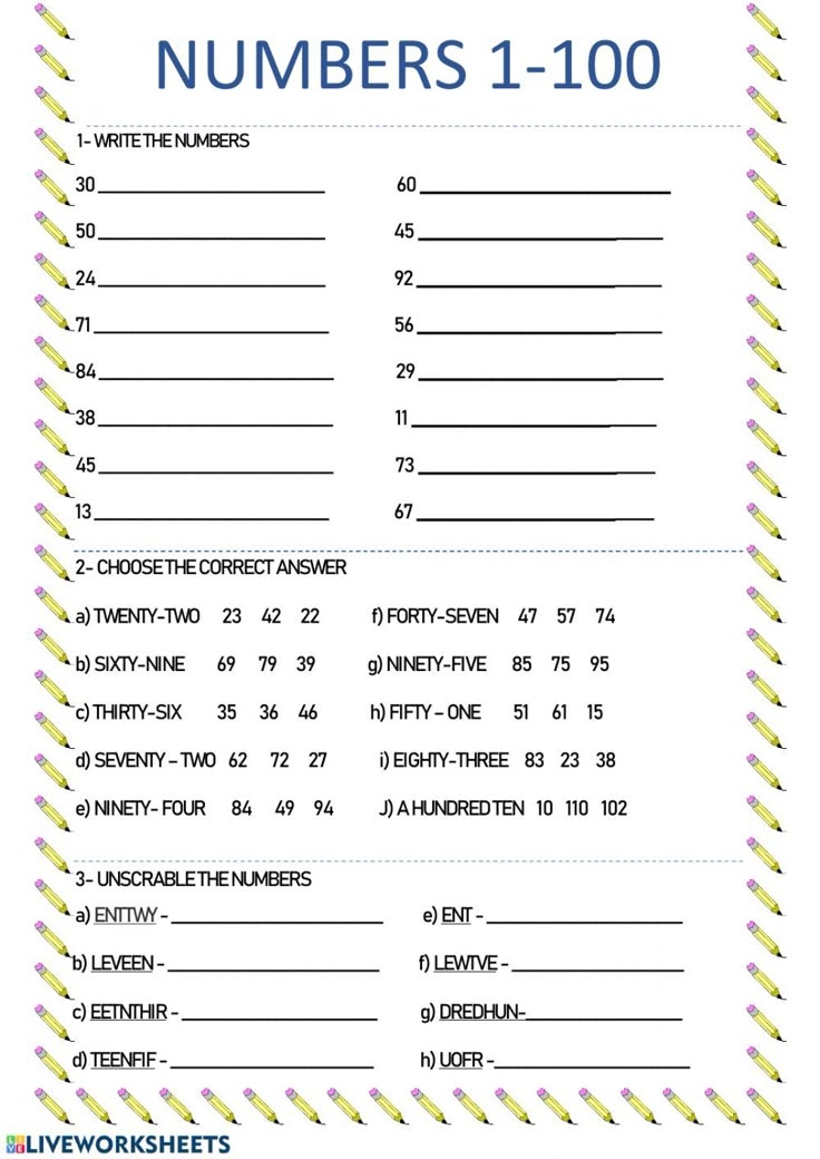 When working with numbers 1-100, it is important to start with the basics. Worksheets typically begin with simple number recognition exercises, where students are asked to identify and write each number in sequence. This helps build a solid foundation for understanding the numerical order and pattern of numbers.