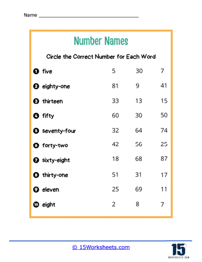 Furthermore, numbers and number names worksheets can be tailored to different grade levels and abilities. Younger children may focus on basic numbers up to ten, while older students can work on more complex numbers and larger numerical values. This customization ensures that the worksheets are appropriate and challenging for each child’s skill level.
