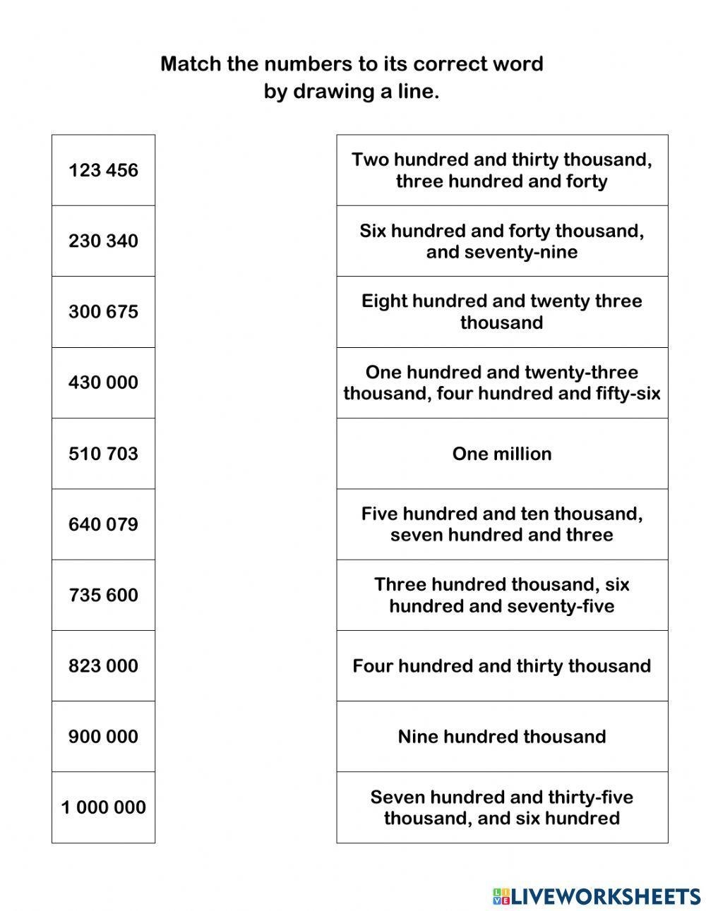 In conclusion, numbers to words worksheets are a valuable resource for students to enhance their language and mathematical skills. By practicing converting numerical figures into written words, students can improve their spelling, comprehension, and critical thinking abilities. These worksheets offer a structured and effective way for students to master this essential skill, preparing them for success in various academic endeavors and real-world scenarios.