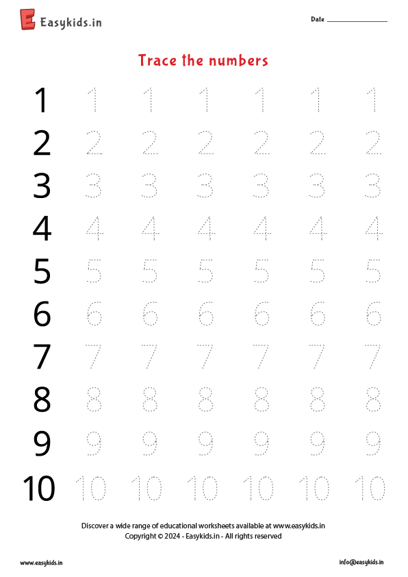 In conclusion, numbers trace worksheets are a valuable educational tool for young learners. They help children develop their fine motor skills, recognize numbers, and make learning a fun and engaging experience. By incorporating these worksheets into their educational routine, students can build a strong foundation in numerical knowledge that will benefit them throughout their academic journey.