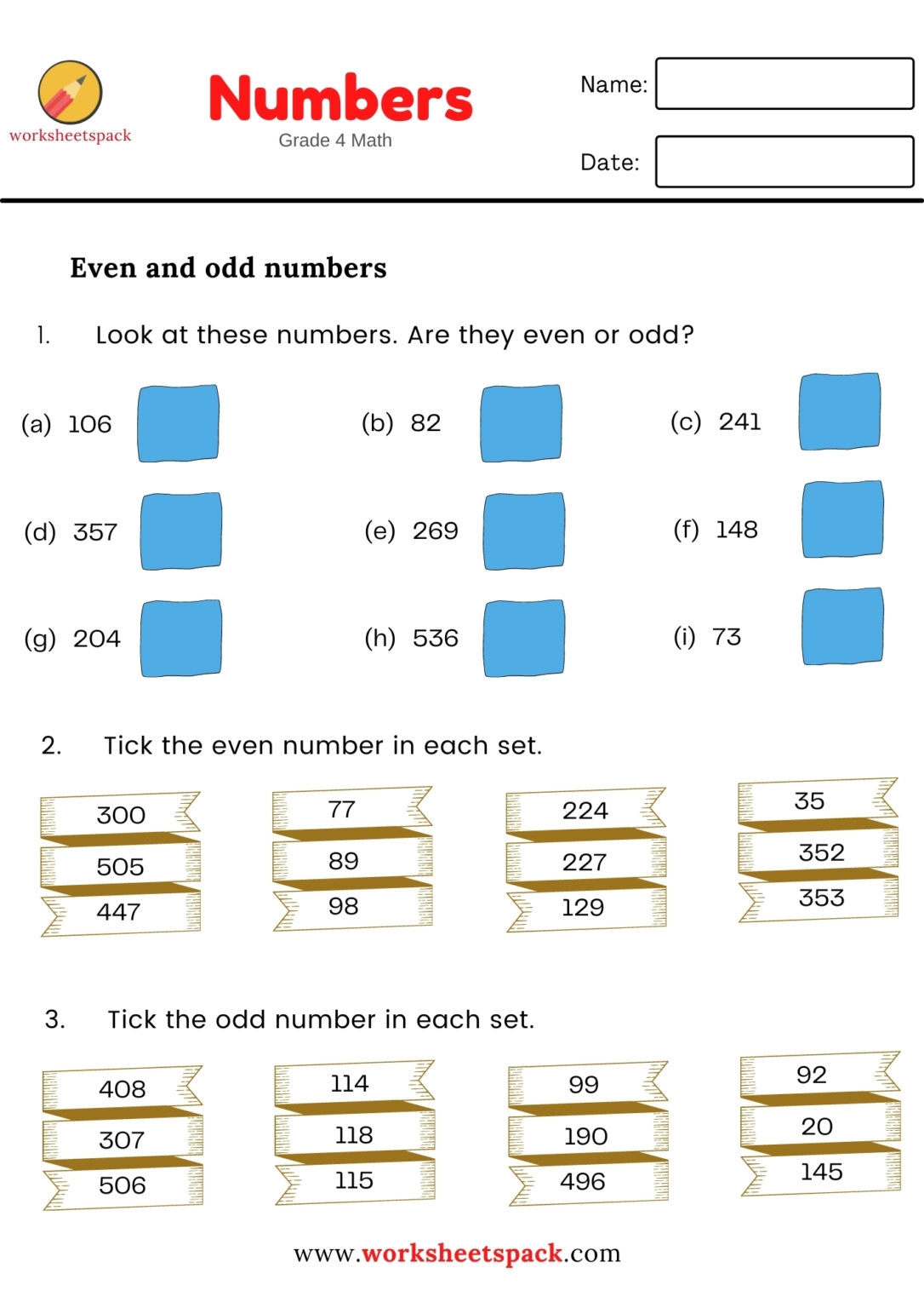 Odd Numbers and Even Numbers Worksheets