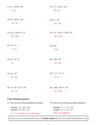 By working through a worksheet on operations with complex numbers, students can gain a solid understanding of addition, subtraction, multiplication, and division of complex numbers. This practice will not only improve their mathematical abilities but also enhance their problem-solving skills.