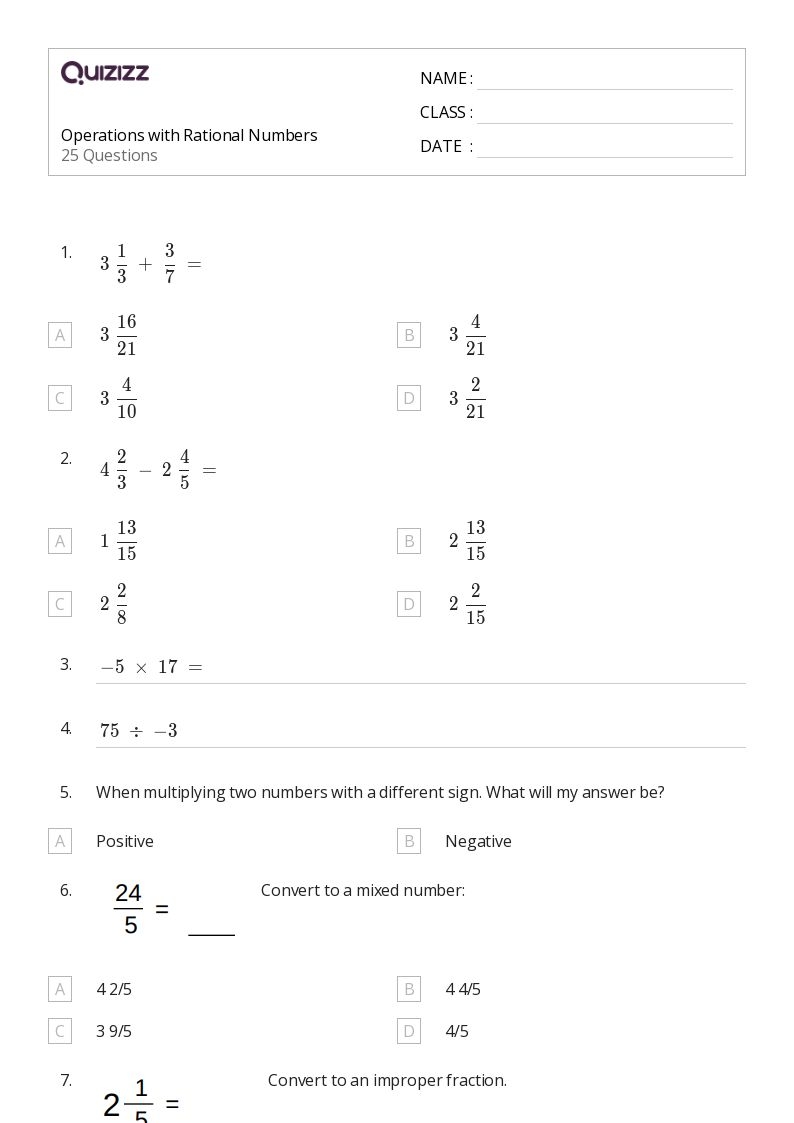 When working on a worksheet that focuses on operations with rational numbers, students will encounter a mix of addition, subtraction, multiplication, and division problems. These problems can vary in difficulty, requiring students to apply different strategies to solve them. By practicing a variety of problems, students can build confidence in their ability to work with rational numbers.