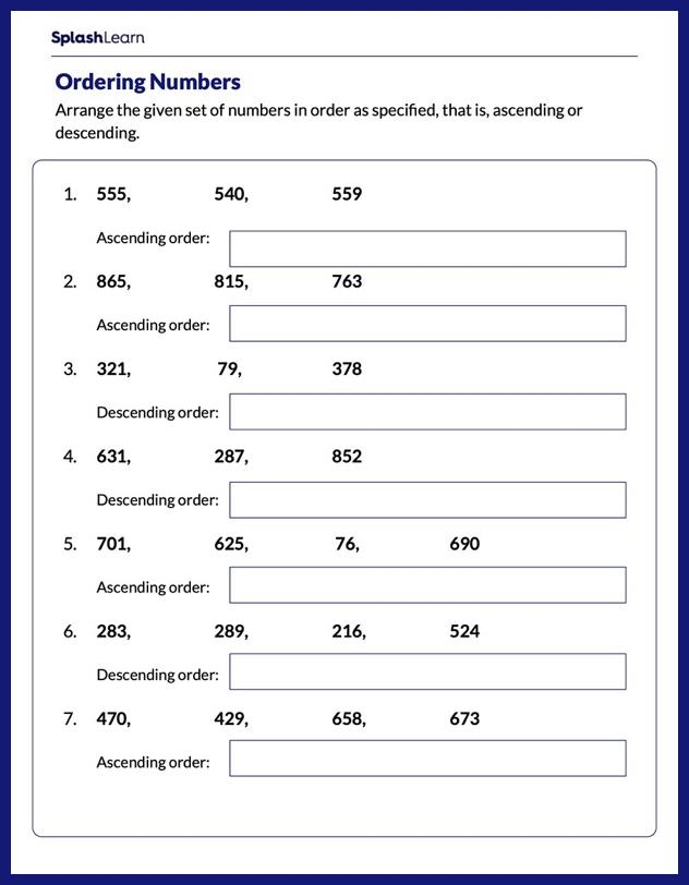One common type of ordering numbers worksheet for grade 3 involves arranging numbers from least to greatest or greatest to least. Students are given a set of numbers and are asked to rearrange them in the correct order. This helps them develop a deeper understanding of number values and how they relate to each other.