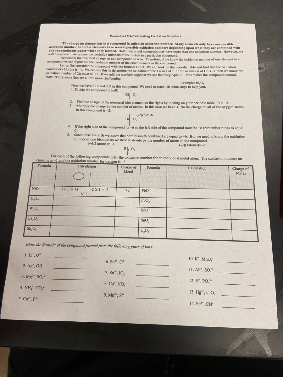 Oxidation Numbers Worksheet and Answers