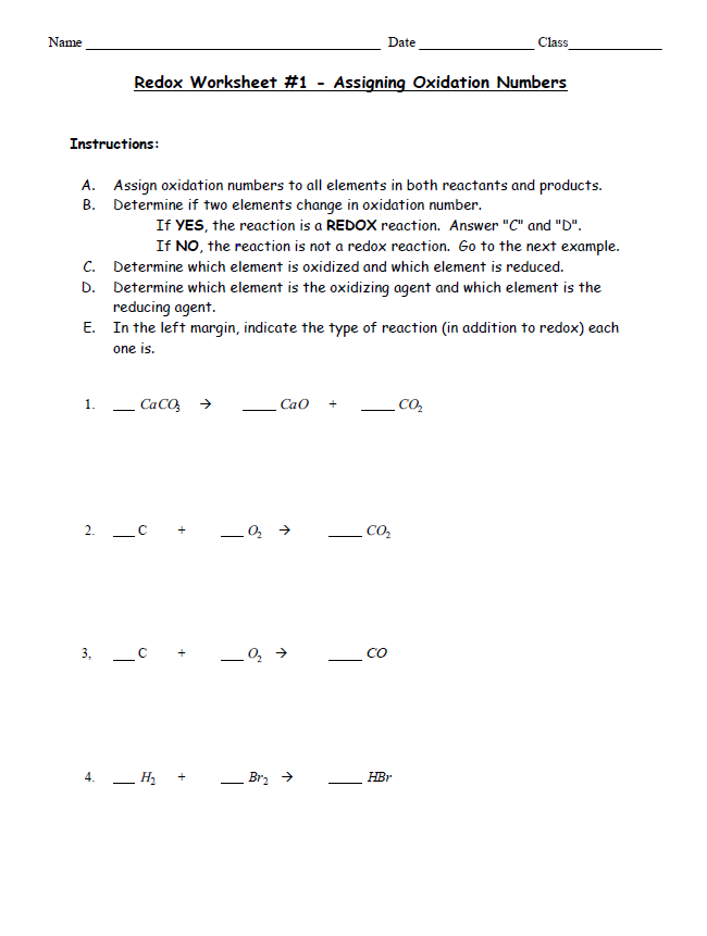 This worksheet typically consists of a series of chemical compounds for students to analyze. Each compound will have a set of rules for assigning oxidation numbers, and students will need to apply these rules to determine the oxidation state of each element. The answers provided on the worksheet will allow students to check their work and ensure they are assigning the correct oxidation numbers.