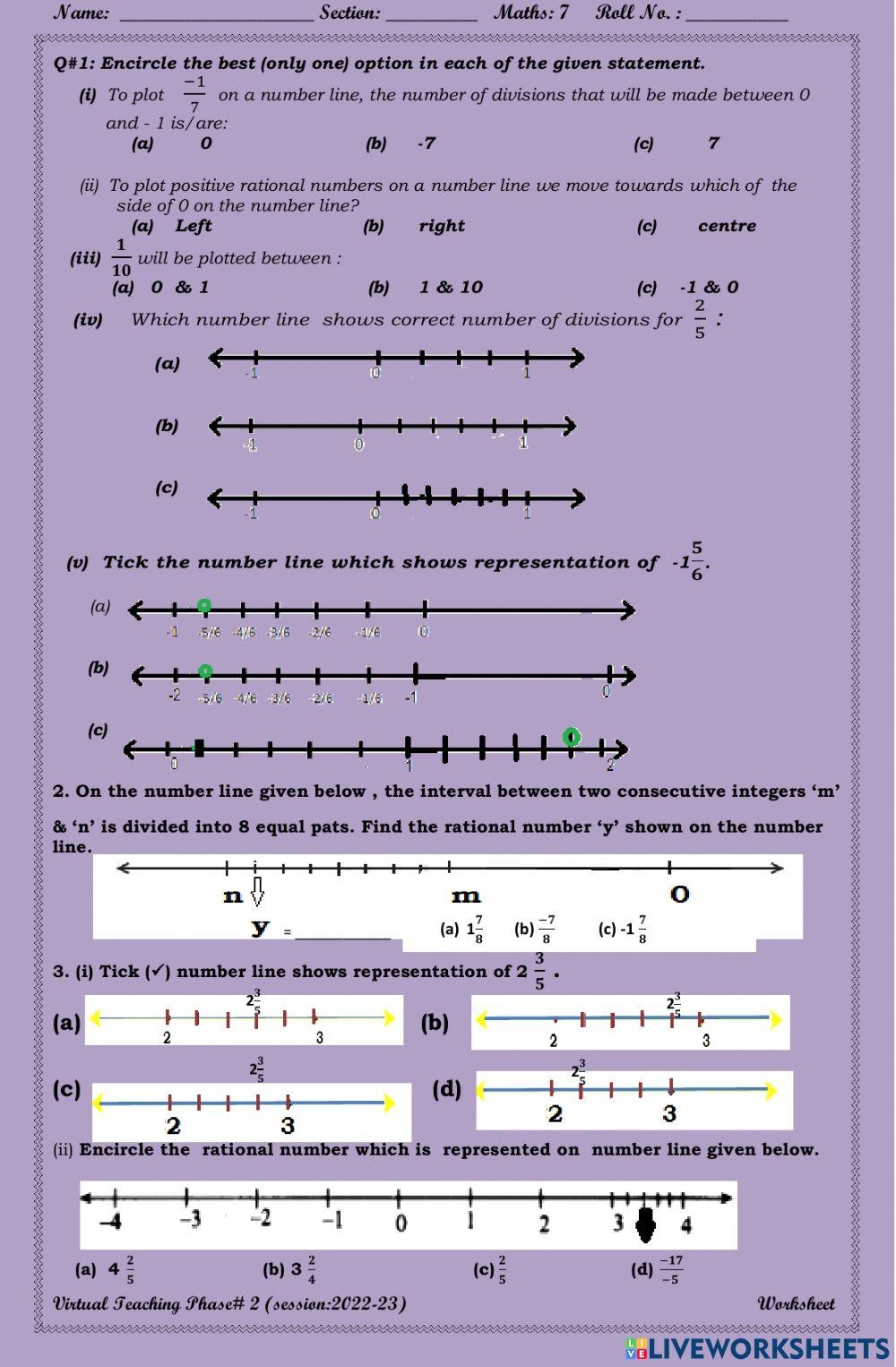 1. Identify the rational number given in the worksheet. This could be in the form of a fraction or a decimal.