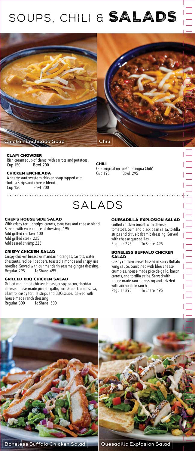 So why wait? Download the printable Chili’s menu with prices and pictures today and start planning your next Tex-Mex feast. Whether you’re a fan of spicy flavors or prefer something more mild, Chili’s has something for everyone to enjoy.