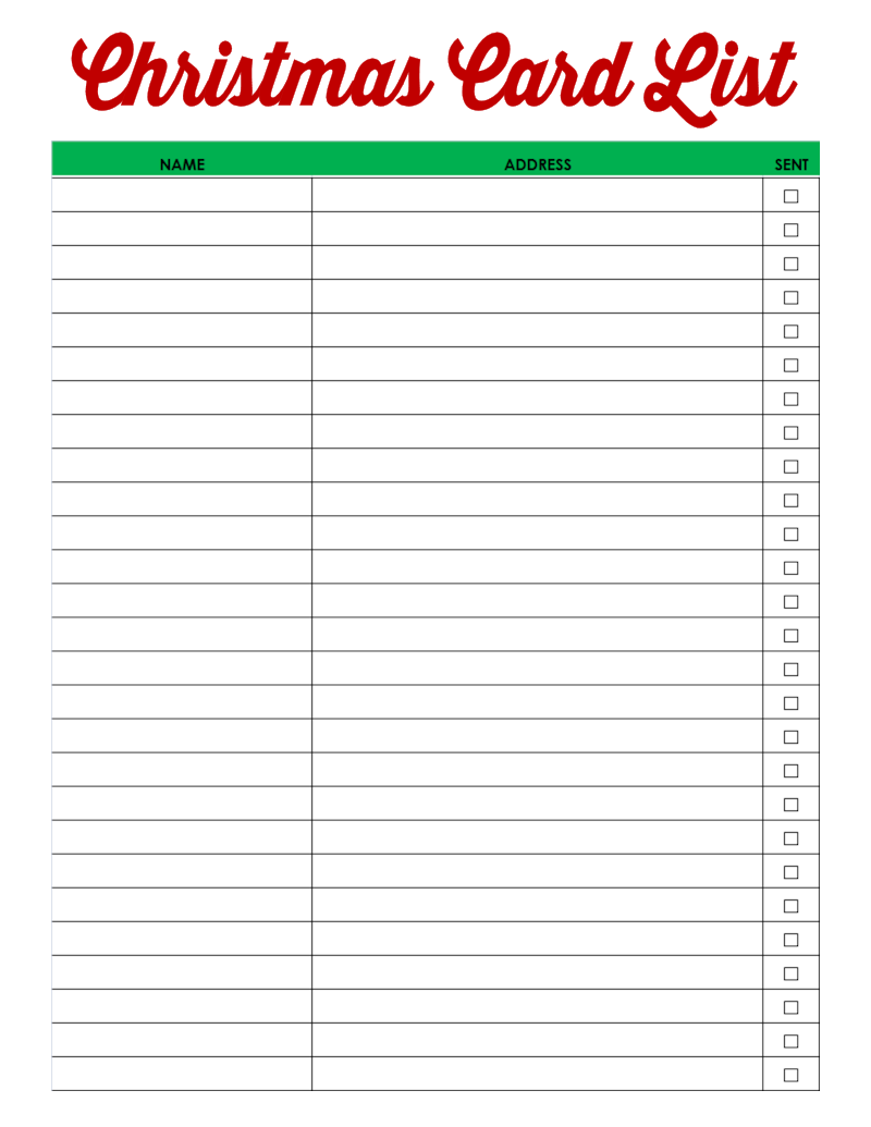 Christmas is a time for spreading joy and cheer to our loved ones. One of the ways to do this is by sending out Christmas cards to friends and family. However, keeping track of who to send cards to can be a daunting task. This is where a printable Christmas card list template can come in handy.