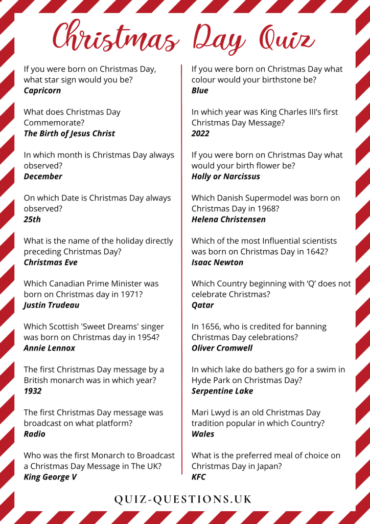 So there you have it – a printable Christmas picture quiz with answers that is sure to entertain and delight. Whether you’re a Christmas fanatic or just looking for a fun way to pass the time during the holiday season, this quiz is a great option. So grab your pencils, gather your friends and family, and get ready to test your Christmas knowledge with this festive quiz!